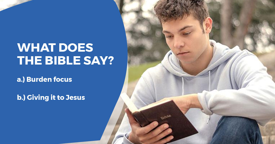 The Bible has a lot to say about anxiety, although the word “anxiety” itself is not often used. For example, Psalm 55:22 says, “Cast thy burden upon the Lord, and he shall sustain thee: he shall never suffer the righteous to be moved.” Anxiety is a burden on the believer. The Bible speaks often to this idea of “burden.” In Matthew 11:28-30, Jesus says, “Come unto me, all ye that labour and are heavy laden, and I will give you rest. Take my yoke upon you, and learn of me; for I am meek and lowly in heart: and ye shall find rest unto your souls. For my yoke is easy, and my burden is light.” In other words, our worries, anxieties and fears are not to be carried alone. Jesus has called us to give them to Him.